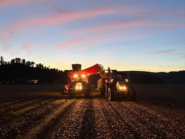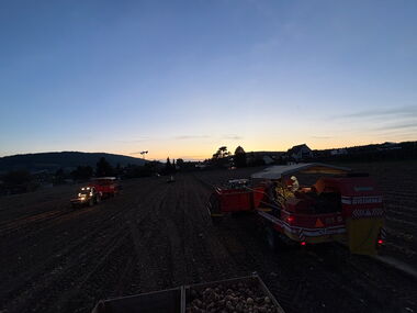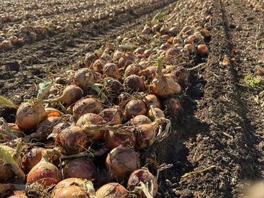 Vom ersten bis zum letzten Sonnenstrahl wurde die Trockenperiode genutzt, um unsere Zwiebeln einzufahren und die Lager zu füllen.